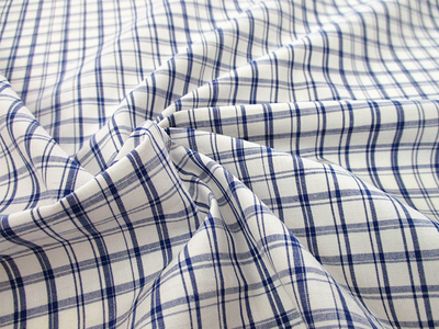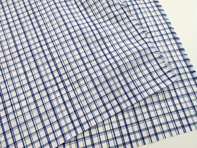 【SALE】先染め綿麻タイプライター チェック(オフ×ブルー)145cm巾