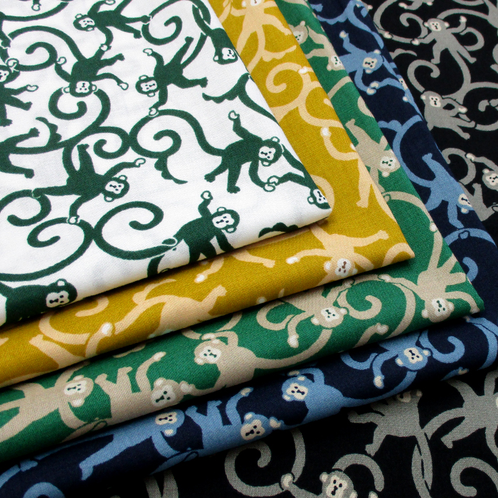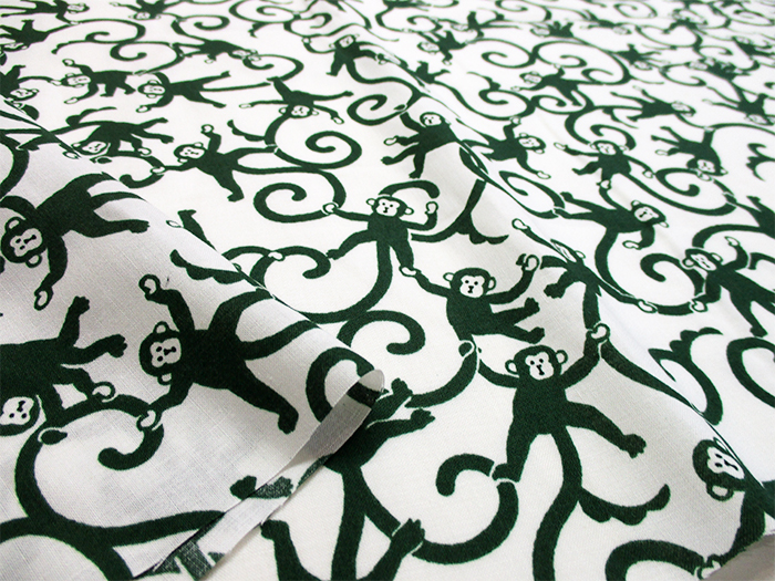 【SALE】スケア和柄プリント おさるの唐草でござる 108cm巾 動物|サル
