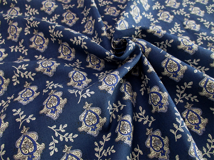 80sシルクヴェールローン 更紗調ボタニカル 108cm巾 花柄