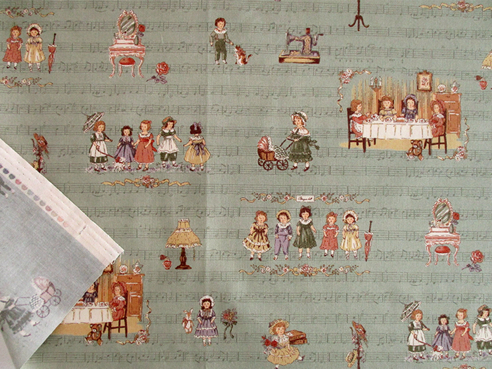 スケアプリント GRACE by ALTO ALBERO COLLECTION -楽譜とアンティークドール- 108cm巾