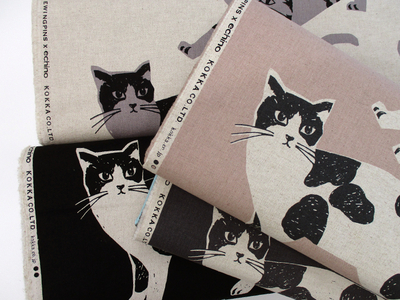 echino NekoNoe 綿麻キャンバス CAT CAT 110cm巾 動物|ねこ