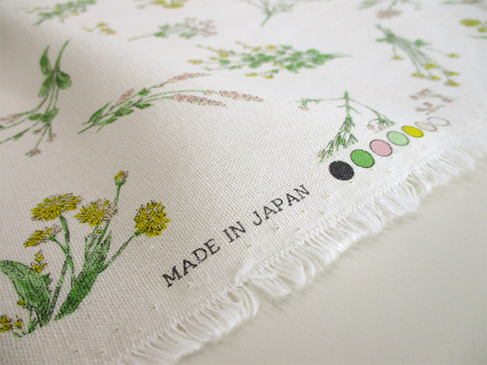 【カットクロスSALE】綿麻キャンバス 80cm 野花(キナリ×黄色)