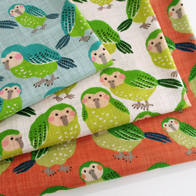 リネンライクなスラブコットン カカポ 104cm巾 動物|トリ|鳥