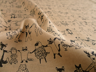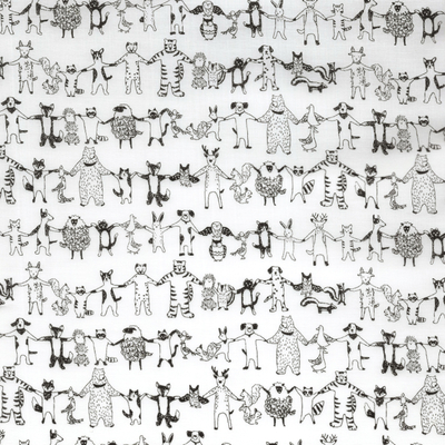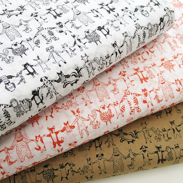 60ローン あんよつないで。 108cm巾 動物|クマ|ねこ|たぬき|トリ