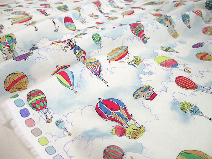 60ローン スカイサーカス 108cm巾 動物|ピエロ|空|雲|ゾウ|気球