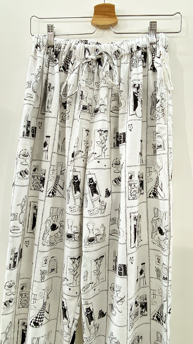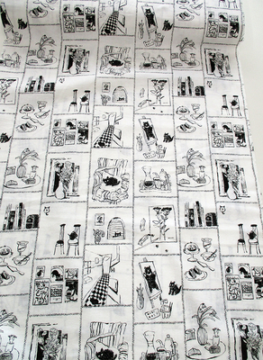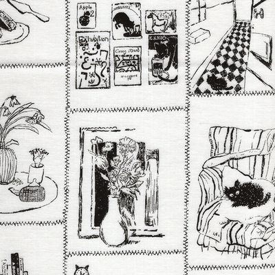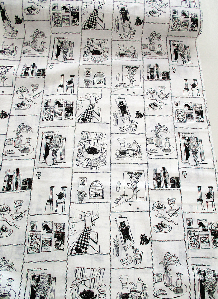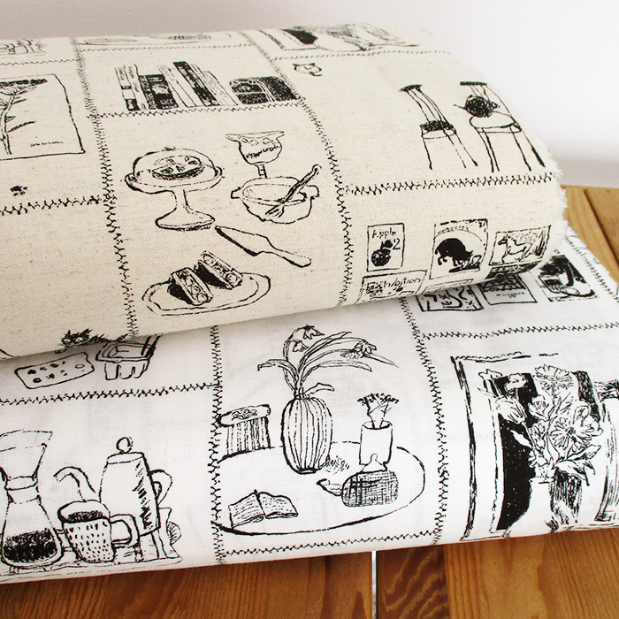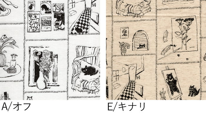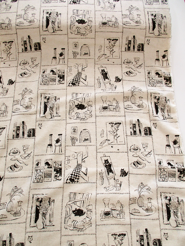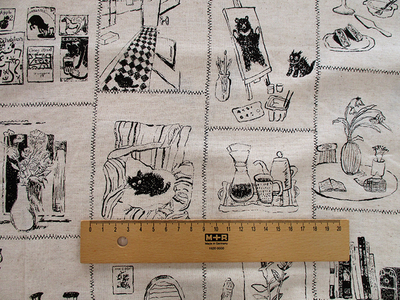 綿麻シーチング 猫のいる暮らし 110cm巾 動物|ねこ|ネコ