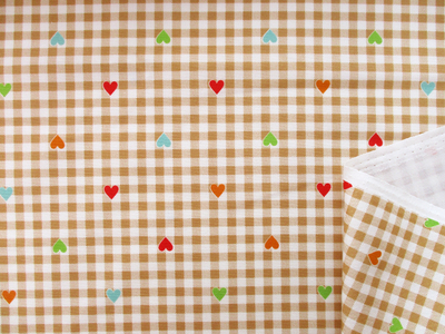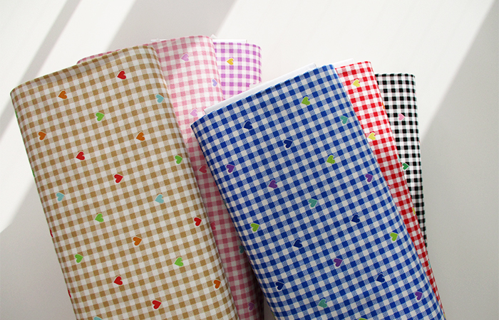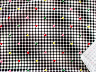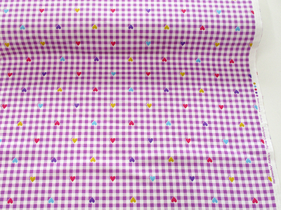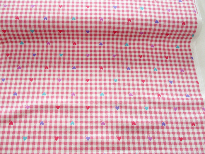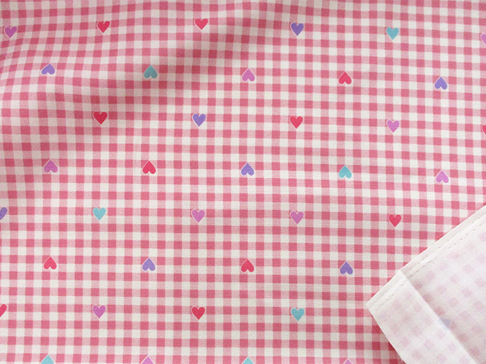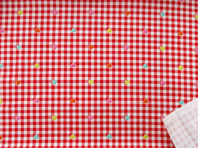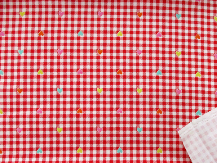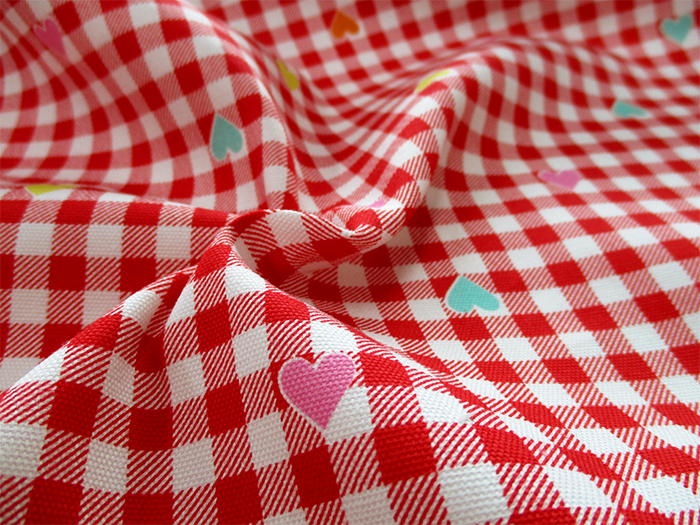 オックスプリント ギンガムチェック&ハート 110cm巾