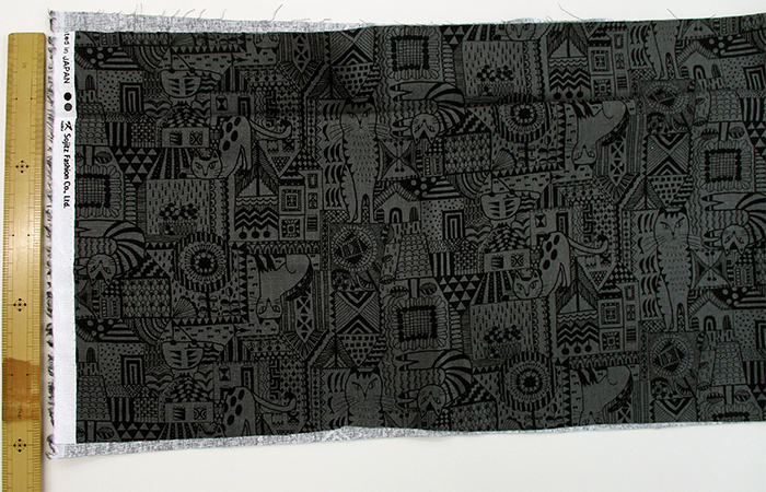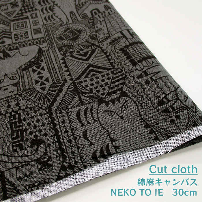 【カットクロス】綿麻キャンバス NEKO TO IE [チャコール]30cm ねこ|ネコ|猫