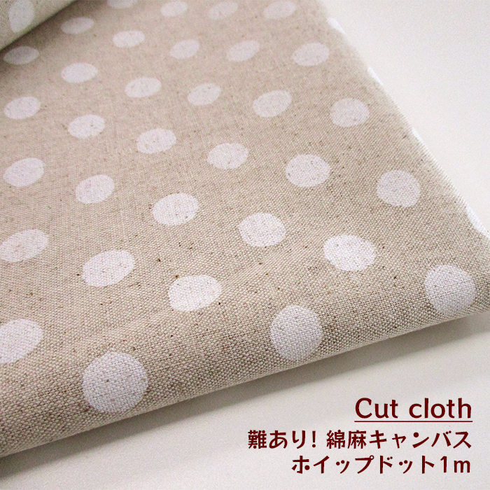 【カットクロス】難ありSALE 綿麻キャンバスホイップドット(13mm) 1m[ホワイト]