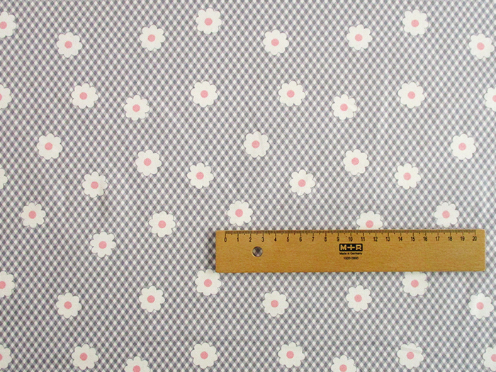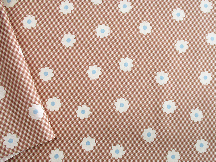 【SALE】オックスプリント ギンガム×マーガレット 110cm巾 チェック|花柄