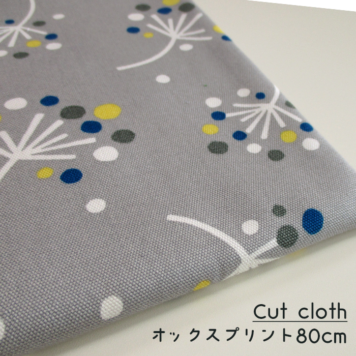 【カットクロス】SALE オックス花柄プリント わたげ 80cm [グレー]