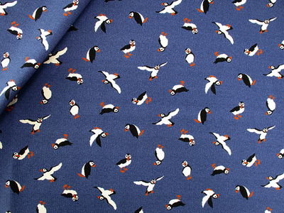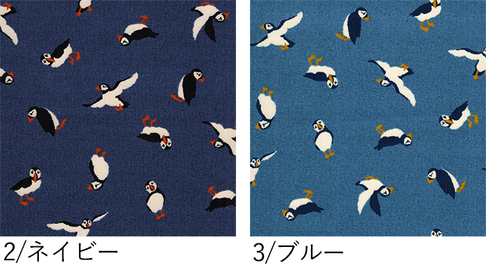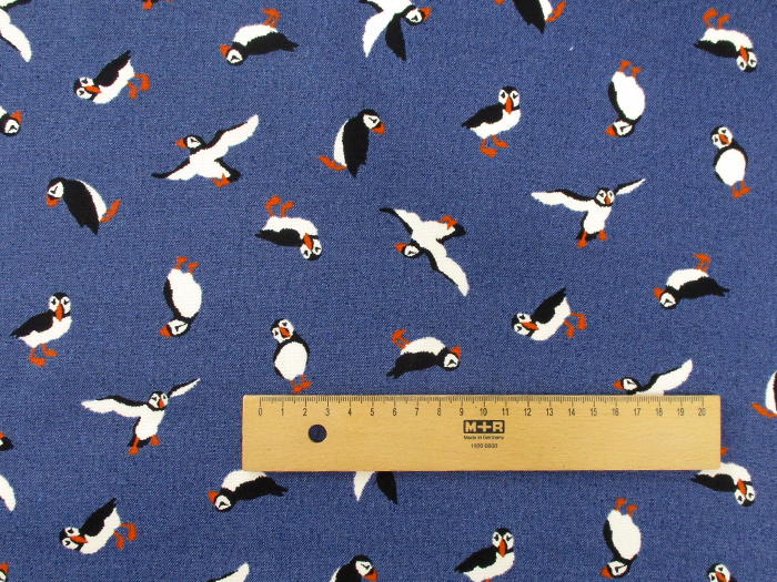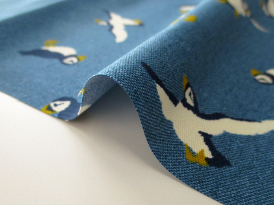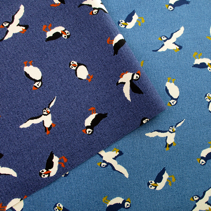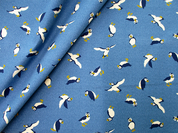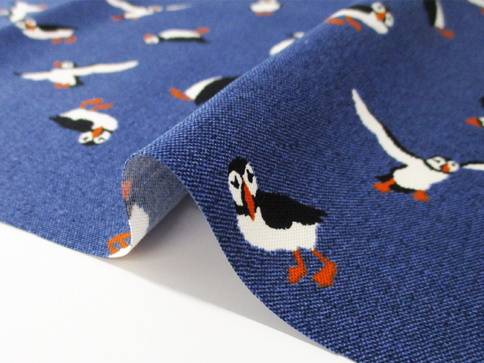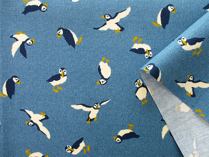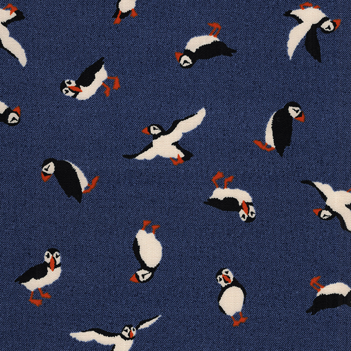 オックス・デニム×アニマルプリント パフィン 110cm巾 動物|鳥|ニシツノメドリ